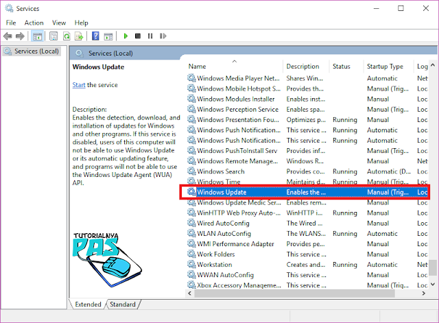 lima. Kemudian scroll dan cari "Windows Updatedanquot;, kemudian double klik "Windows Update"